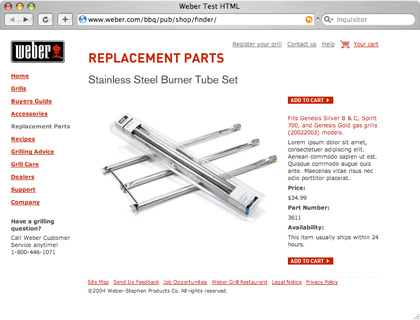 E-commerce section of Weber.com to help customers find and purchase replacement parts for Weber grills.